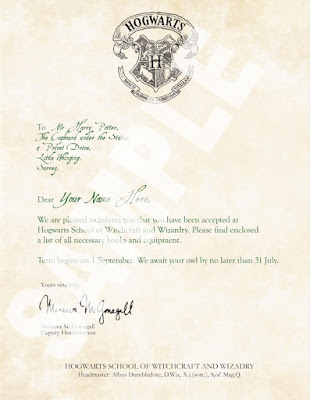 A CUSTOM Hogwarts School of Witchcraft and Wizardry Acceptance letter from the Harry Potter World.It will display your chosen name and address!