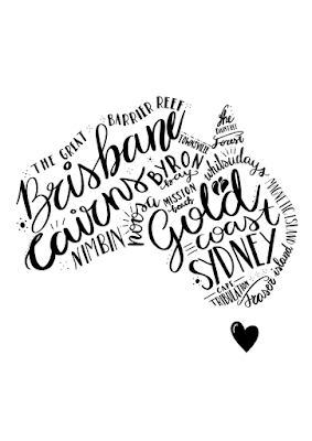 My artwork is inspired by my own travels to Australia, and I decided to memorialise my time by hand-lettering the cities which meant the most to me, in the shape of the country.
